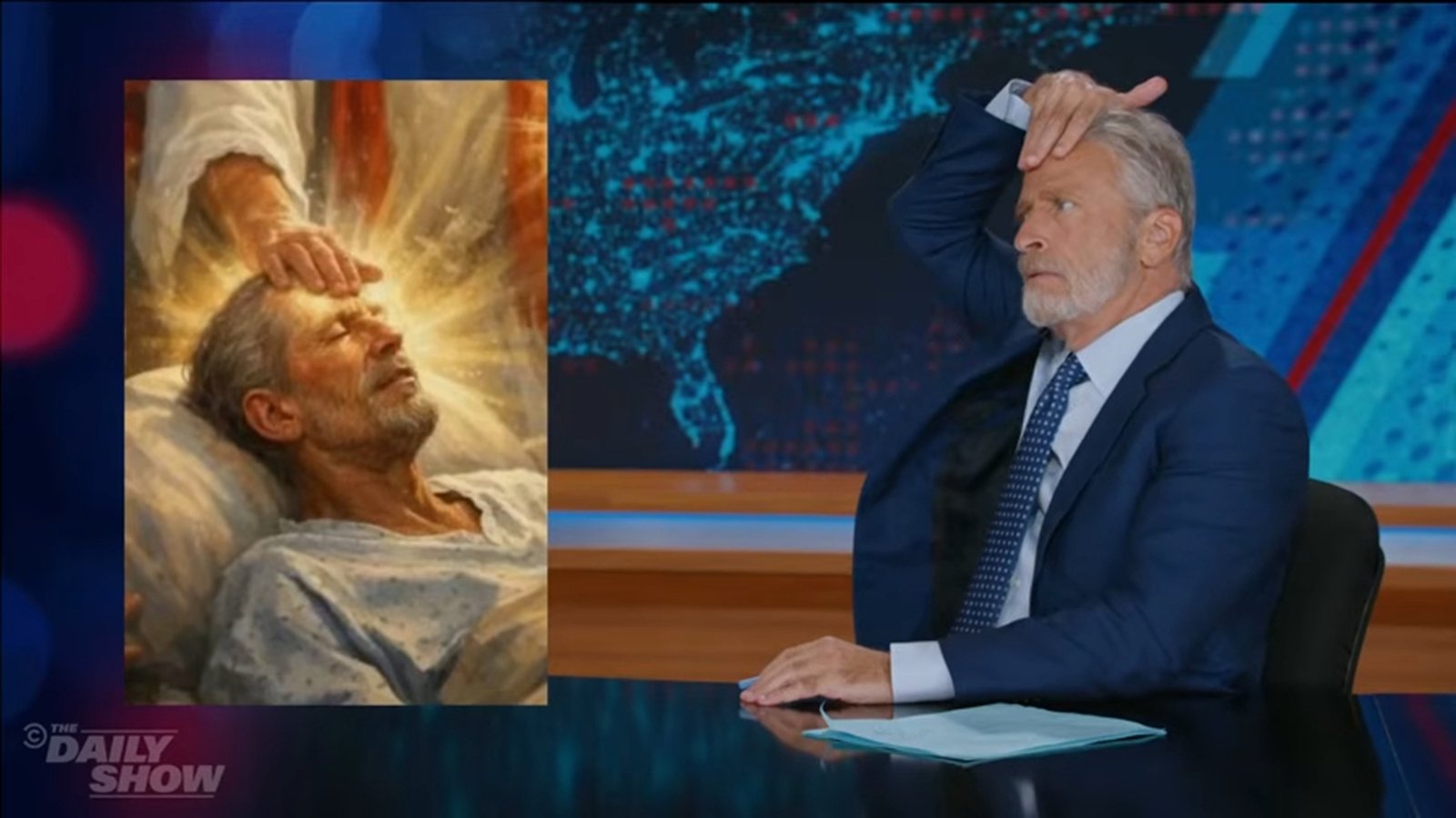 Na última segunda-feira, o comediante Jon Stewart expressou sua surpresa ao perceber uma semelhança notável entre ele e um homem doente retratado em um meme compartilhado pelo ex-presidente Donald Trump. O meme, que foi postado no domingo à noite, mostra Trump se representando como Jesus Cristo, e a imagem chamou a atenção de Stewart, que não hesitou em comentar sobre a situação. Em meio a um clima de descontração, o comediante não pôde deixar de questionar a peculiaridade da situação com uma expressão de espanto. A reação de Stewart é emblemática do impacto que a figura de Trump continua a ter na cultura pop, especialmente no que diz respeito a representações que cruzam limites entre o humor e a crítica. A escolha de Trump em se retratar como uma figura religiosa, além de controversa, gerou debates sobre a relação entre política e espiritualidade, algo que tem sido amplamente discutido na sociedade atual. Embora a brincadeira tenha sido feita em tom humorístico, também levanta questões sobre a percepção pública de líderes políticos e suas representações. A figura de Trump, frequentemente polarizadora, continua a ser um tópico relevante tanto nas mídias sociais quanto nas conversas cotidianas, evidenciando como a política e a cultura se entrelaçam de maneira inesperada.
