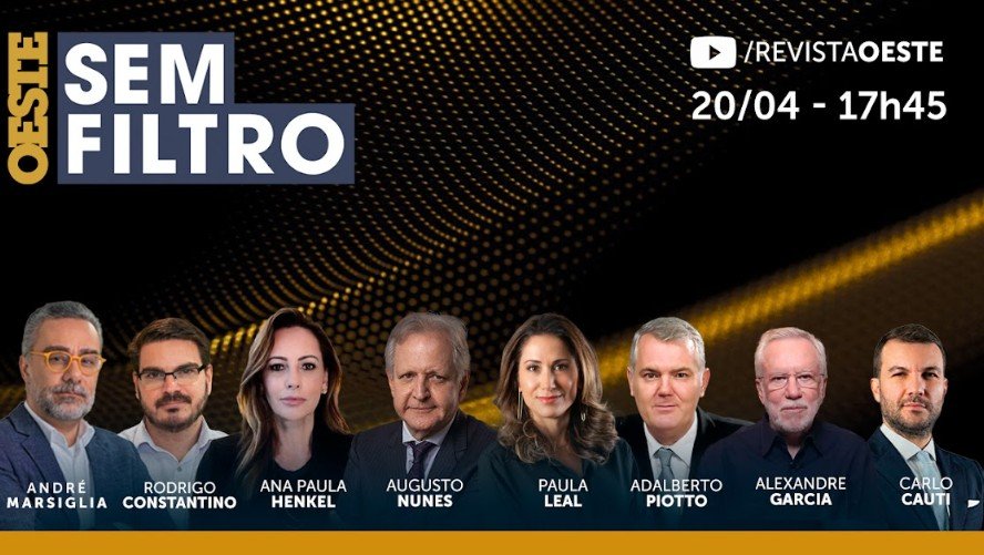 O programa Oeste Sem Filtro, apresentado por Paula Leal, vai ao ar de segunda a sexta-feira, das 17h45 às 19h45. Na edição de 20 de abril de 2026, o programa trouxe importantes comentários de Augusto Nunes, Adalberto Piotto, André Marsiglia e Carlo Cauti. Entre os destaques, Flávio Bolsonaro se manifestou em resposta ao voto do ministro Alexandre de Moraes, que condenou Eduardo Bolsonaro, evidenciando a perseguição política que os membros da família Bolsonaro têm enfrentado. Eduardo também criticou Moraes por seu voto em relação à ação envolvendo Tabata, ressaltando a necessidade de se defender as liberdades individuais. A defesa de Filipe Martins pediu comunicação a órgãos internacionais, alertando sobre os riscos à sua vida devido à sua detenção. Bia Kicis visitou Filipe, emocionando-se após mais de 800 dias de prisão. Outro ponto relevante foi a informação de que Bolsonaro está apto para cirurgia, após uma melhora em sua saúde. O advogado de Daniel Silveira fez um pedido para que Moraes permita o acesso do deputado às redes sociais. Além disso, o TCU revelou que R$ 28 bilhões da merenda escolar não foram analisados. Os desdobramentos envolvendo o caso Master e as críticas de Lula sobre a invasão de Cuba também foram abordados. O programa ainda destacou a prisão de pessoas ligadas aos eventos de 8 de janeiro, sob a gestão autoritária de Moraes. Para mais detalhes, acesse o programa completo no site da Revista Oeste.