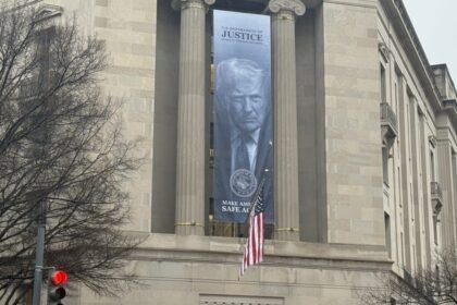 Na última quinta-feira, o Departamento de Justiça dos Estados Unidos recebeu uma decoração especial com diversos banners exibindo o rosto do ex-presidente Donald Trump, acompanhados do slogan ‘F...