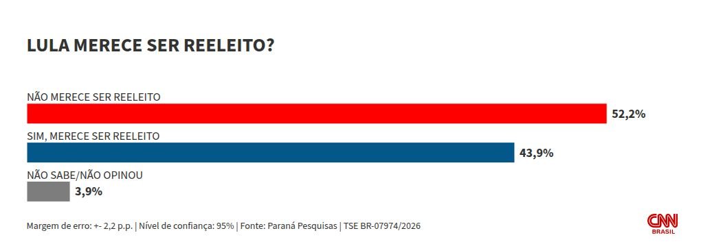 Uma recente pesquisa realizada pelo Paraná Pesquisas revelou que 52,2% dos entrevistados não consideram Lula digno de uma reeleição em 2026. Essa opinião contrária ao petista tem ganhado força entre os eleitores, refletindo um descontentamento generalizado com sua administração atual. Por outro lado, apenas 43,9% acreditam que Lula merece um novo mandato, o que indica uma divisão significativa entre a população. Os resultados de tais levantamentos são cruciais para entender o cenário político brasileiro, especialmente em um momento em que o país enfrenta desafios econômicos e sociais. A pesquisa ressalta a necessidade de uma reflexão profunda sobre as promessas não cumpridas e as ações do governo, que têm gerado críticas e insatisfação em diversos setores da sociedade. A rejeição a Lula pode ser vista como um sinal de que muitos brasileiros anseiam por mudanças e por um governo que verdadeiramente atenda às suas necessidades. Com as eleições se aproximando, é fundamental que os eleitores se mobilizem e analisem criticamente as opções disponíveis, buscando candidatos que realmente defendam os interesses da população e promovam a liberdade e a prosperidade. As vozes contrárias à reeleição de Lula são um indicativo do desejo por uma nova direção política no Brasil.
