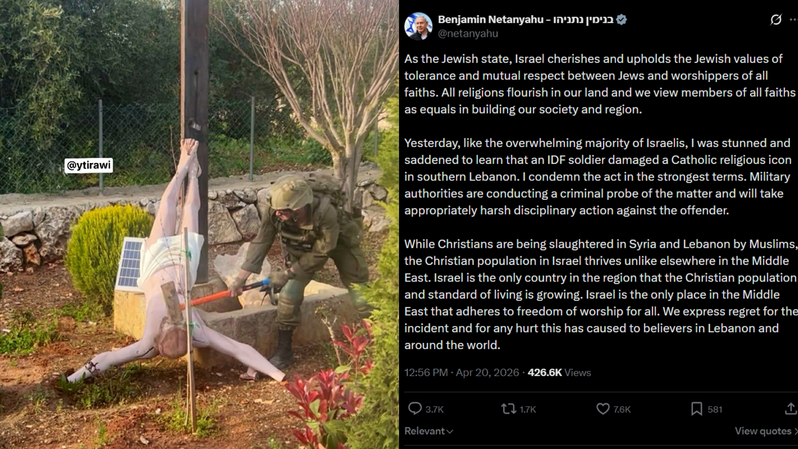 Um incidente recente envolvendo um soldado israelense causou indignação nas redes sociais. O soldado foi flagrado em uma fotografia destruindo uma estátua de Jesus Cristo, o que gerou uma onda de críticas e protestos por parte de diversos grupos e indivíduos ao redor do mundo. Este ato, que ocorreu em meio à escalada de tensões na região do Líbano, levanta preocupações sobre a proteção de símbolos religiosos e a sensibilidade em relação a diferentes crenças.